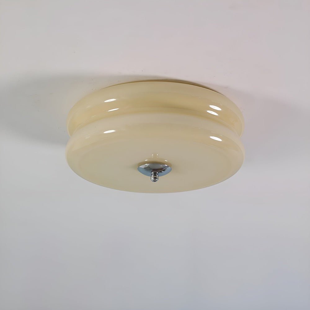 La couleur crème de ce plafonnier n'est pas qu'un choix esthétique, c'est un véritable atout bien-être. Contrairement au verre transparent, le verre crème filtre la lumière pour éliminer les reflets agressifs et les ombres marquées. Il en résulte une luminosité veloutée qui flatte les teints et sublime les matériaux naturels comme le bois ou le lin. Que ce soit pour éclairer une entrée accueillante ou pour apporter du cachet à un bureau, ce luminaire diffuse une aura de sérénité. Sa texture opaline reste élégante de jour comme de nuit, apportant une note de douceur permanente à votre décoration.