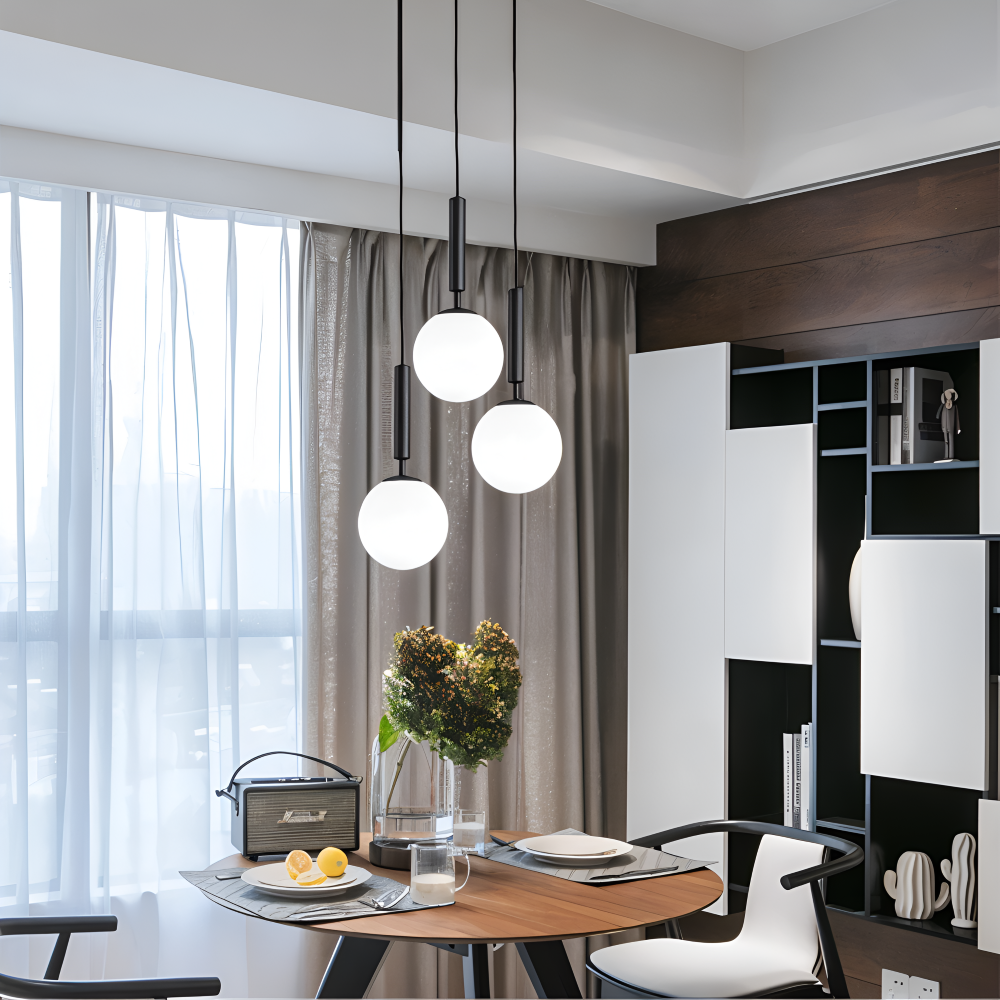 La forme ronde est universellement reconnue pour sa capacité à apaiser les volumes intérieurs. En choisissant cette suspension, vous introduisez une douceur géométrique qui contraste avec les lignes droites du mobilier et des murs. Le verre blanc opale agit comme un diffuseur naturel de premier ordre, baignant la pièce d'une lumière qui imite la clarté du jour. C’est le choix idéal pour créer une atmosphère accueillante dans une salle à manger ou pour apporter une luminosité sans éblouissement au-dessus d'un îlot central, garantissant une ambiance à la fois chic et fonctionnelle.