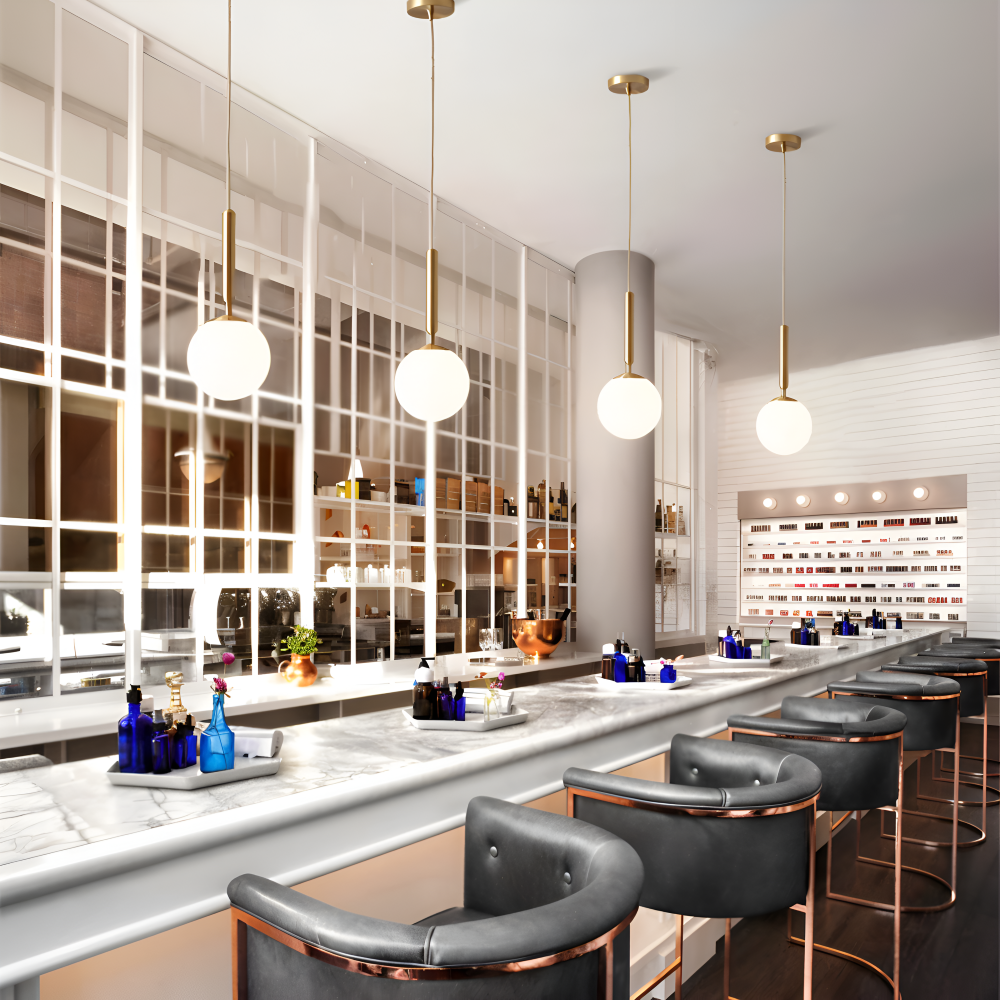 Au-delà de son esthétique épurée, ce globe en verre blanc brille par sa qualité de fabrication. Le verre soufflé est traité pour offrir une épaisseur constante, assurant une diffusion homogène de la lumière sur toute sa surface. Sa monture discrète et son câble ajustable permettent une intégration sur mesure, quelle que soit votre hauteur sous plafond. Facile à entretenir grâce à sa surface lisse, elle reste impeccable année après année. Compatible avec les ampoules LED, elle vous permet de choisir la température de couleur souhaitée — du blanc chaud pour le cocooning au blanc neutre pour la clarté — tout en assurant une efficacité énergétique optimale.