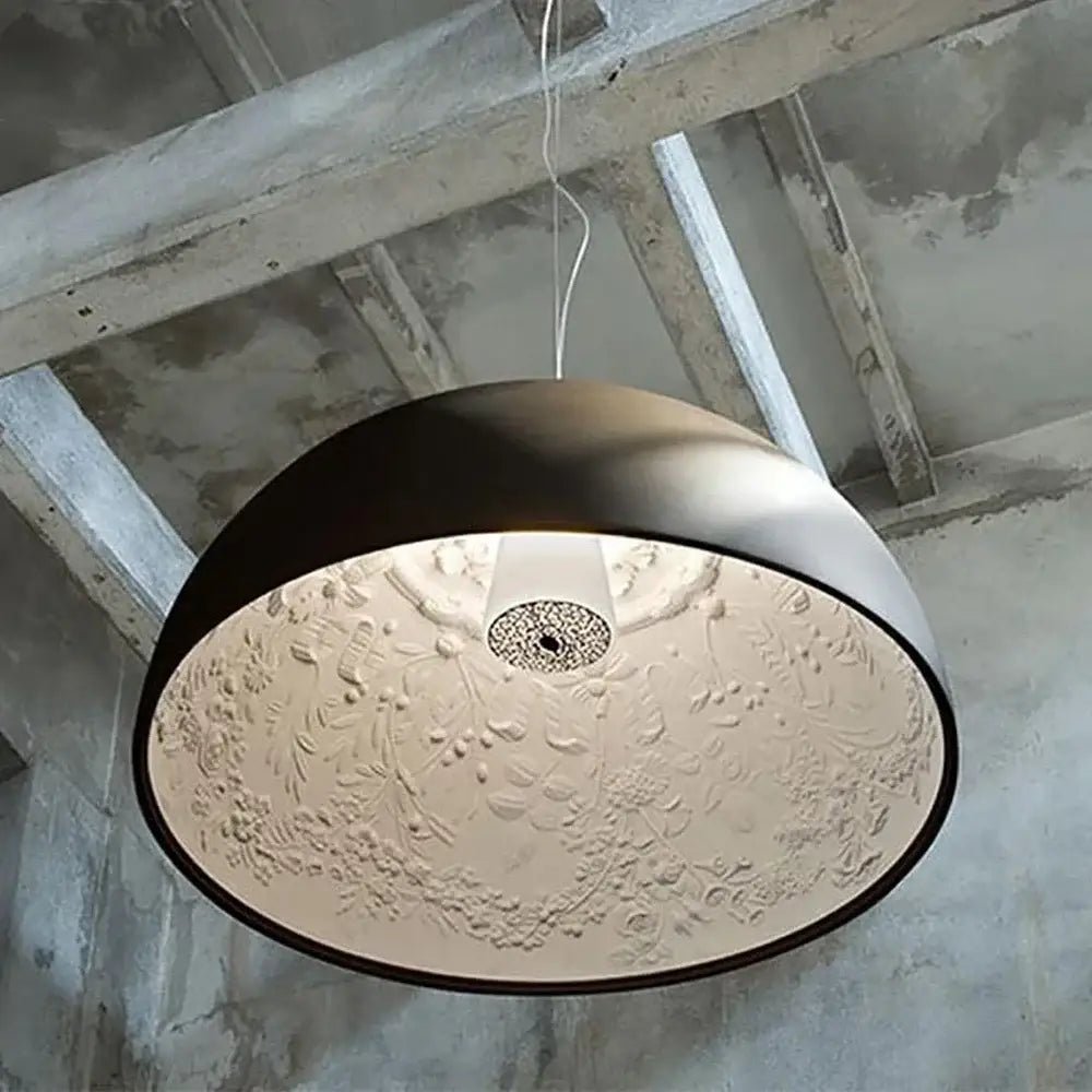 Apportez une touche d’élégance orientale à votre intérieur avec ce plafonnier marocain. Son design en forme de coupole noire révèle un intérieur richement sculpté de motifs floraux traditionnels, créant un jeu d’ombres unique lorsqu’il est allumé. Parfait au-dessus de votre table de salle à manger, il offre un éclairage chaleureux et authentique tout en devenant un élément décoratif central. Fabriqué avec des matériaux robustes, il garantit durabilité et style. Sublimez vos repas et créez une ambiance conviviale avec ce luminaire marocain raffiné et intemporel.