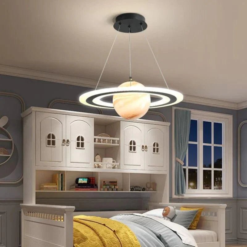 Ce plafonnier Saturne pour chambre ado séduit par son design réaliste qui rappelle la planète et ses anneaux lumineux. L’allumage LED offre un éclairage doux et agréable, parfait pour lire, étudier ou se relaxer. Fabriqué avec des matériaux résistants, ce luminaire assure un rendu esthétique durable. Idéal pour créer une ambiance moderne, il s’adapte aussi bien à un décor épuré qu’à une décoration thématique sur l’espace, apportant ainsi une touche créative et tendance.